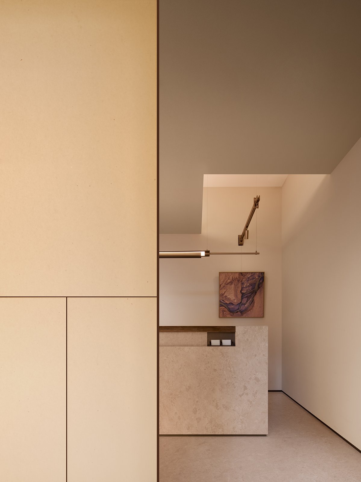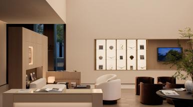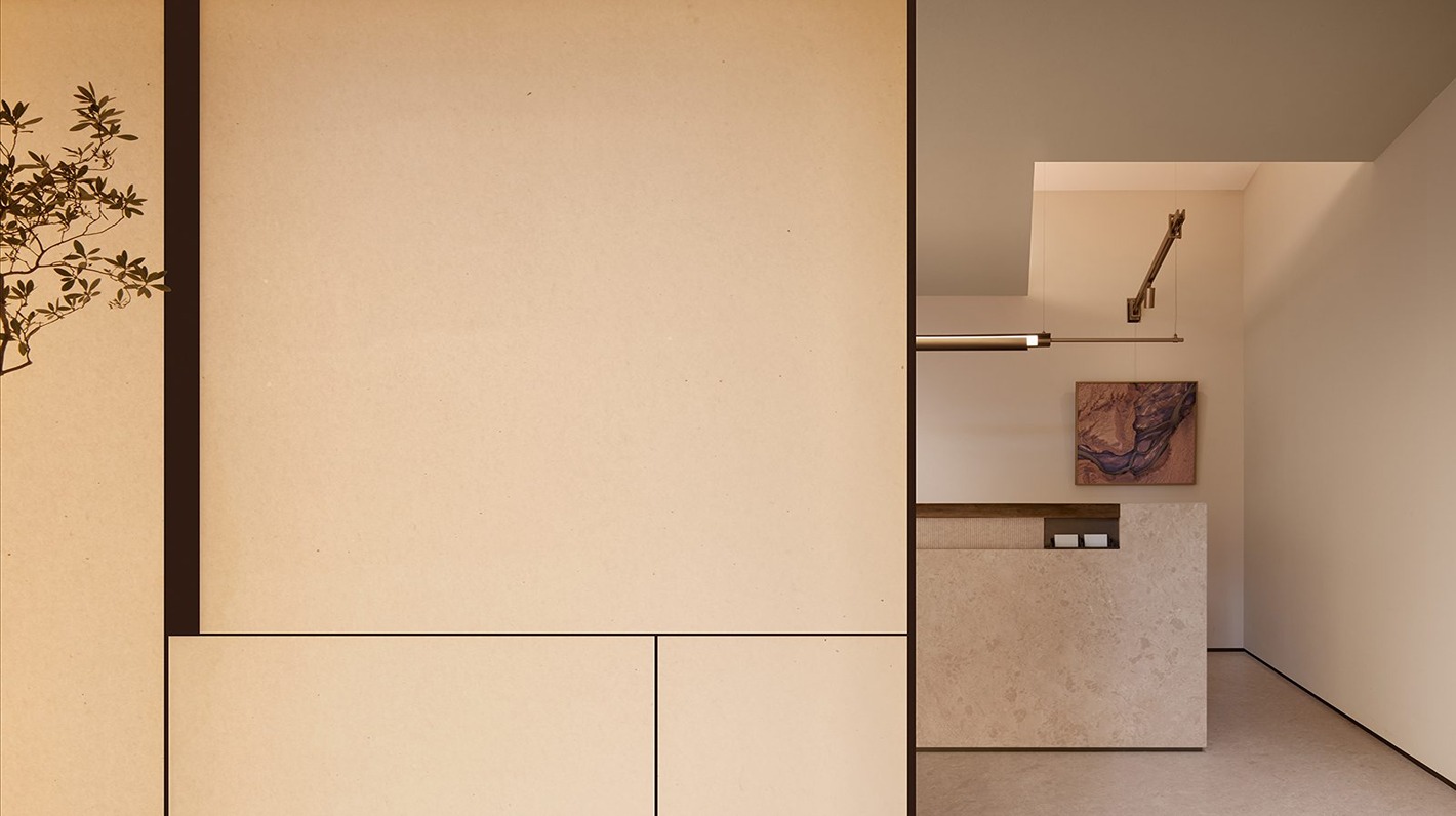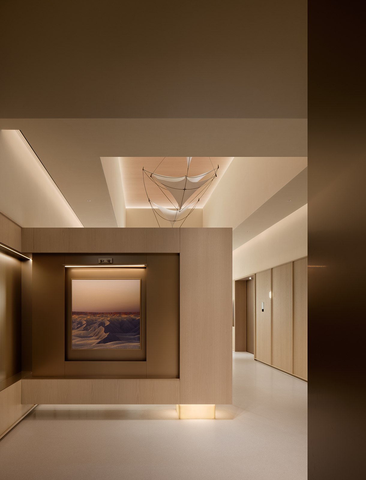 材质的语言,是空间的情感基底。以温润的木色主导基调,地面铺陈与建筑主体呼应的灰调水磨石,墙面则覆盖着触感细腻的肌理漆。这些自然亲和的材料,以其含蓄的质感,柔和地包裹着前沿的科技产品,于细微处流露深切的人文关怀。