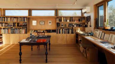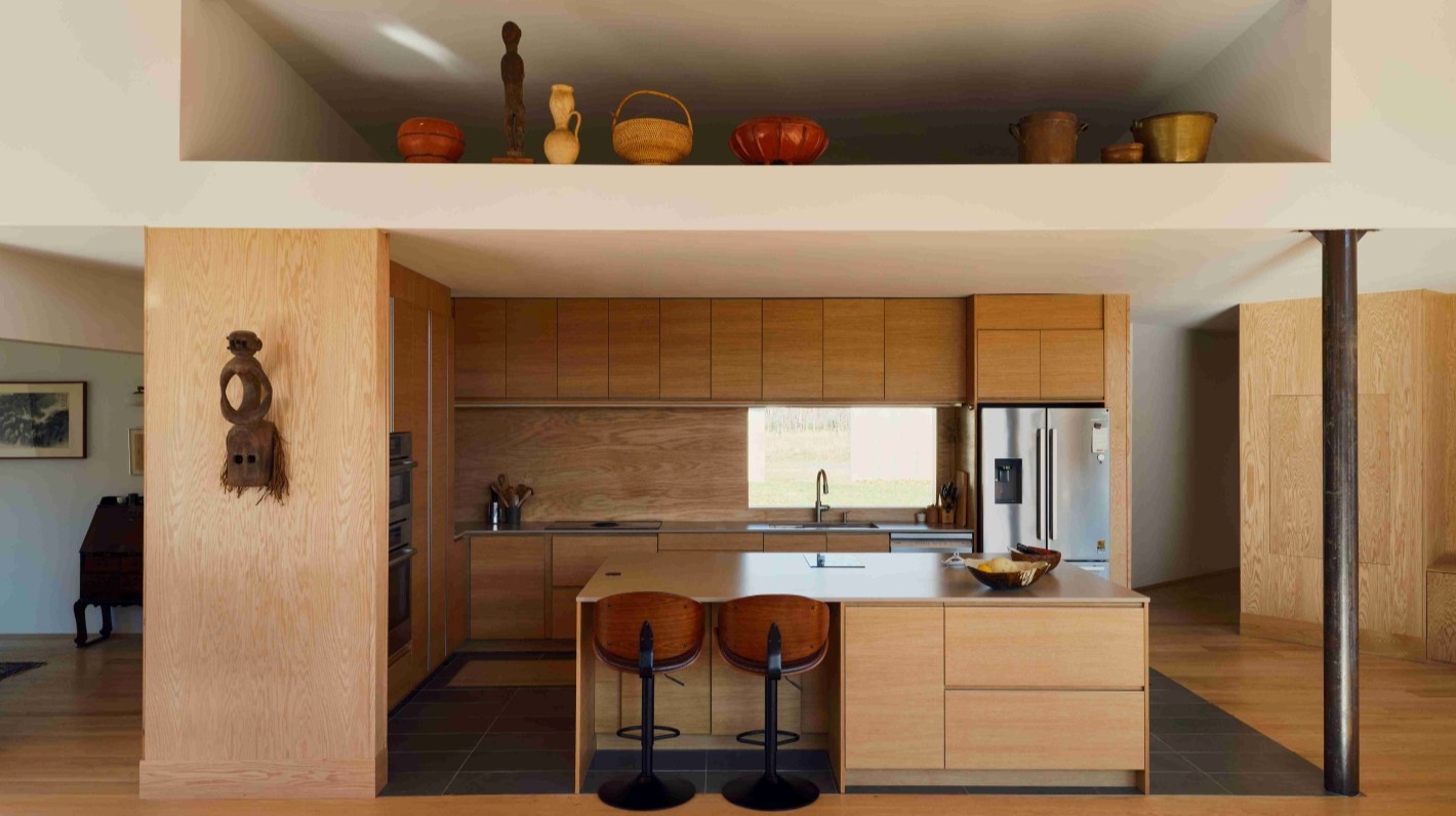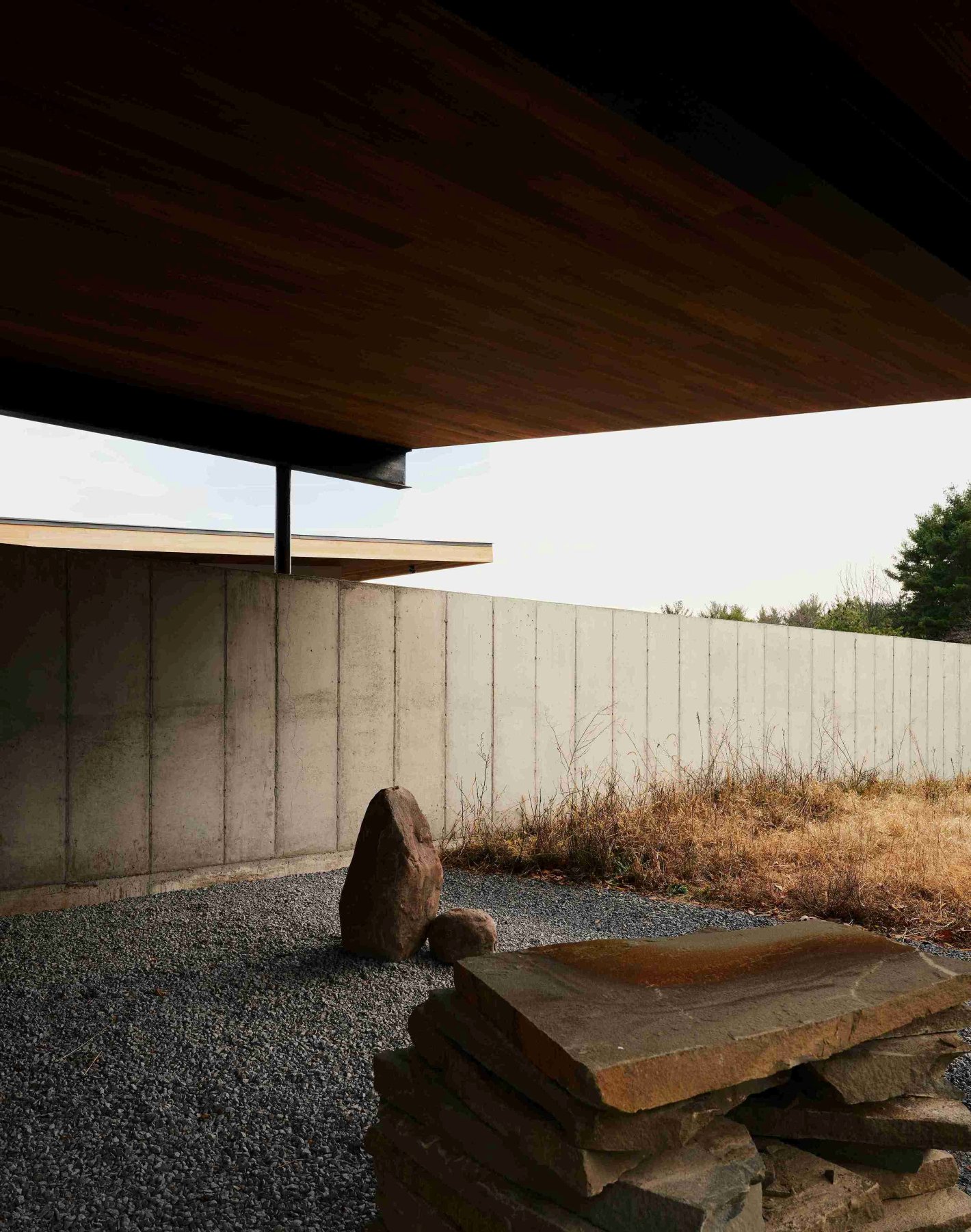 混凝土既是墙体,也延伸为景观,恰到好处地挡住风与视线。工作室刷白色,卧室选浅色木头,这些材料随着季节流转,会慢慢“变老”。